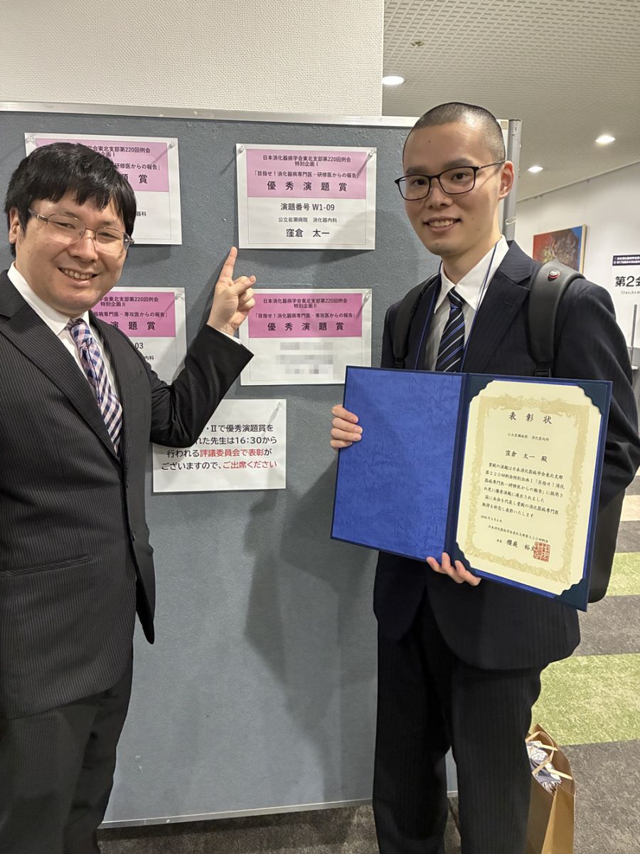 2026年2月6日~7日に宮城県仙台市で開催された「日本消化器病学会東北支部第220回例会」において、当院研修医の窪倉太一先生が優秀演題賞を受賞しました!