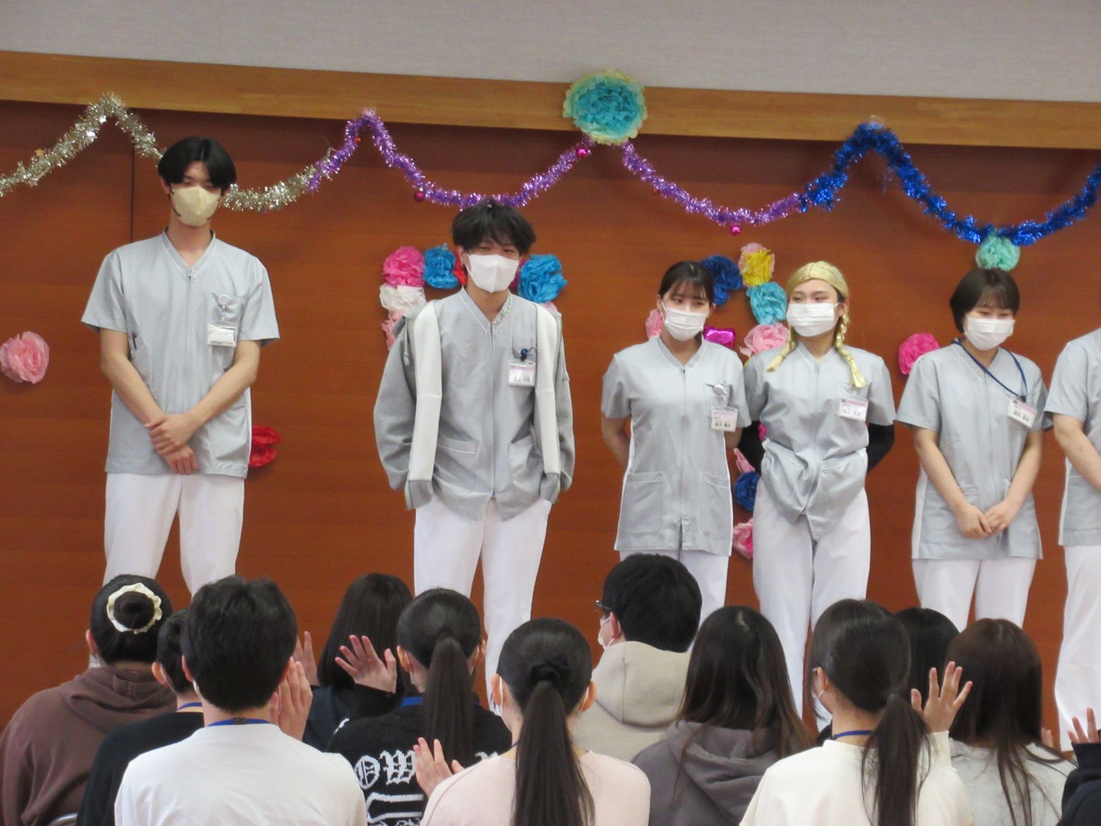また、先輩学生からは、白衣の身だしなみについて、ユーモアを交えながら分かりやすく紹介があり、楽しみながら学べる歓迎会となりました。